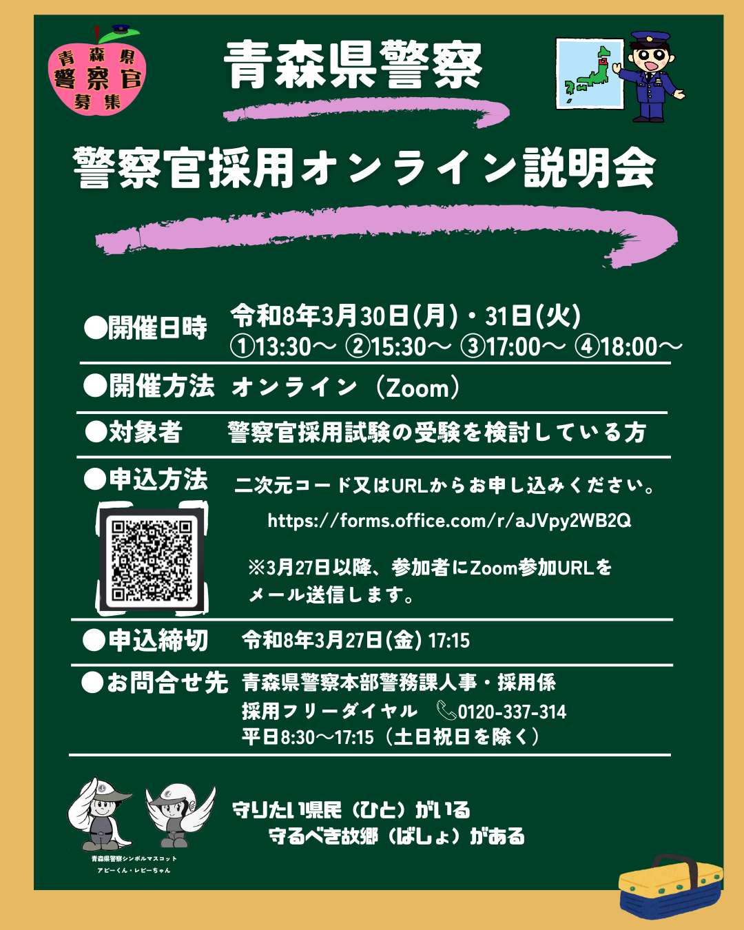 青森県警察本部警務課人事・採用係採用フリーダイヤル 0120-337-314