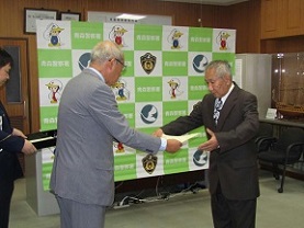が交通死亡事故皆無記録を達成したことから、10月30日に署長室において表彰式をおこないました。幸畑支部は4000日間、旭町支部は5500日間の死亡事故皆無記録となります。
